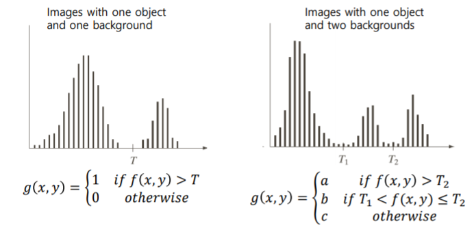 - 분할, 추출하고 싶은 물체와 배경의 밝기값이 다르다.