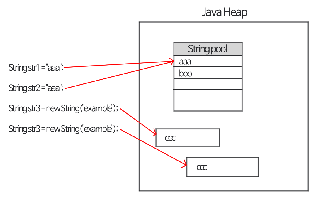 위 두 가지 방식에는 큰 차이점이 있는데, 리터럴을 사용하게 되면 string constant pool이라는 영역에 존재하게 되고, new를 통해 String을 생성하면 Heap 영역에 존재하게 된다.