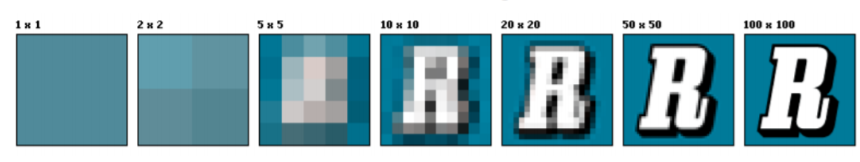 동일한 영상이지만, 몇개의 픽셀을 쓰느냐에따라 결과가 다름