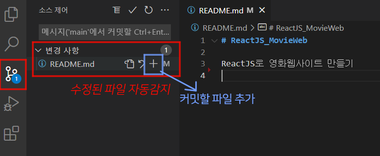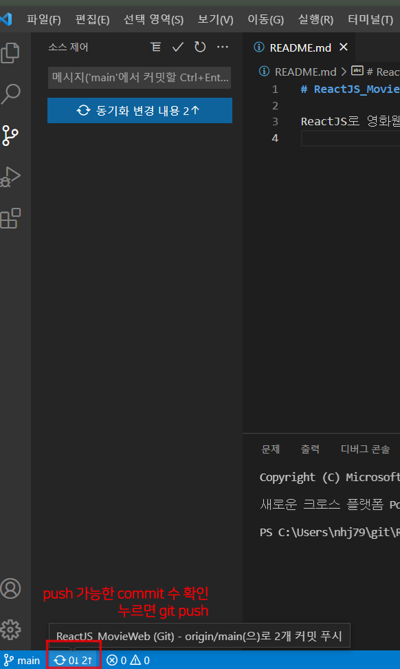 vscode에서 코드를 수정하고 git에 commit과 push하는 방법은 다음과 같다.