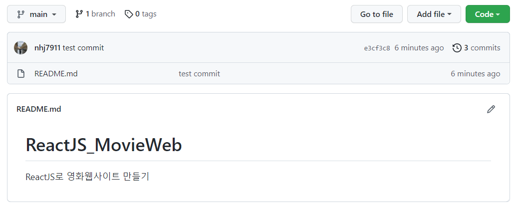 5) github에서 commit이 잘 push 되어있음을 확인 가능.